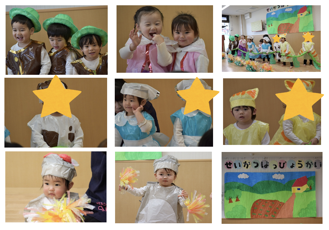 3.4.5歳児さんの「みつばちマーヤの冒険」では長いセリフを覚え、恥ずかしそうにしながらもきちんとセリフを言っている姿がとってもかっこよかったです。